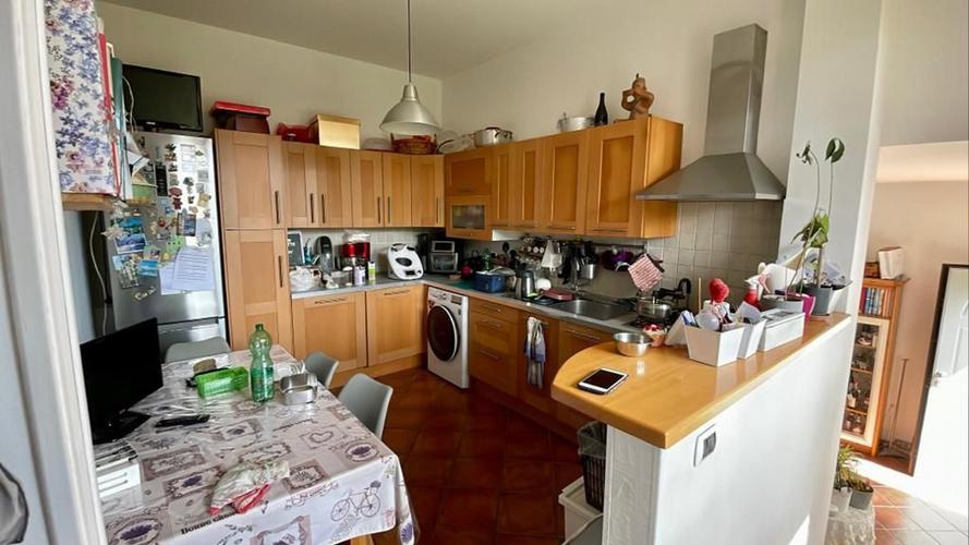 Al piano seminterrato sbancato con entrata indipendente un salone con camino, una cucina a vista, una camera e un bagno. All'esterno c'è un bellissimo giardino di 600 mq con posti auto.